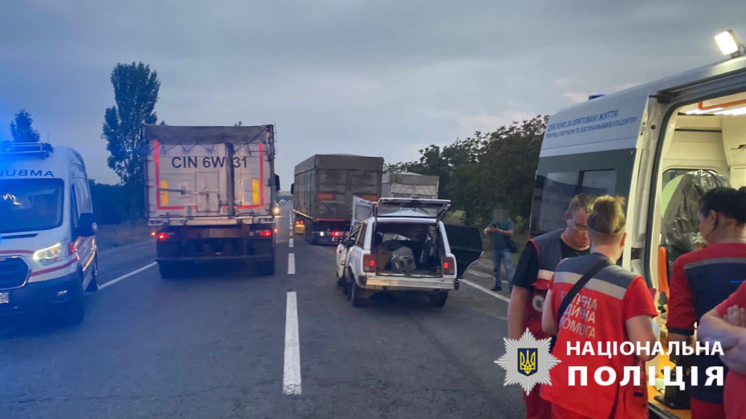 Унаслідок зіткнення легковика з вантажівкою травмувалася родина з п’яти людей, серед яких – троє дітей: поліцейські розслідують обставини ДТП на трасі Одеса – Рені