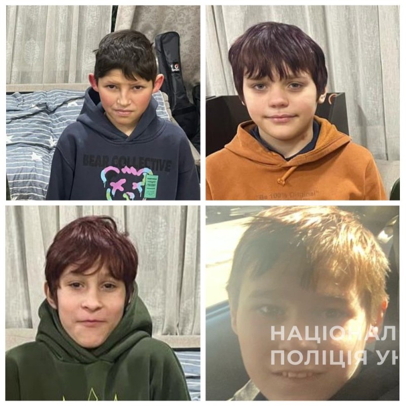 Одеським районним управлінням поліції № 1 встановлюється місцезнаходження 10-річного Сергія Шевченка, 11-річного Артема Стоянова, 12-річного Данила Приходченка та 14-річного Богдана Приходченка, які сьогодні, 21 квітня, втекли з реабілітаційного центру в Київському районі Одеси.