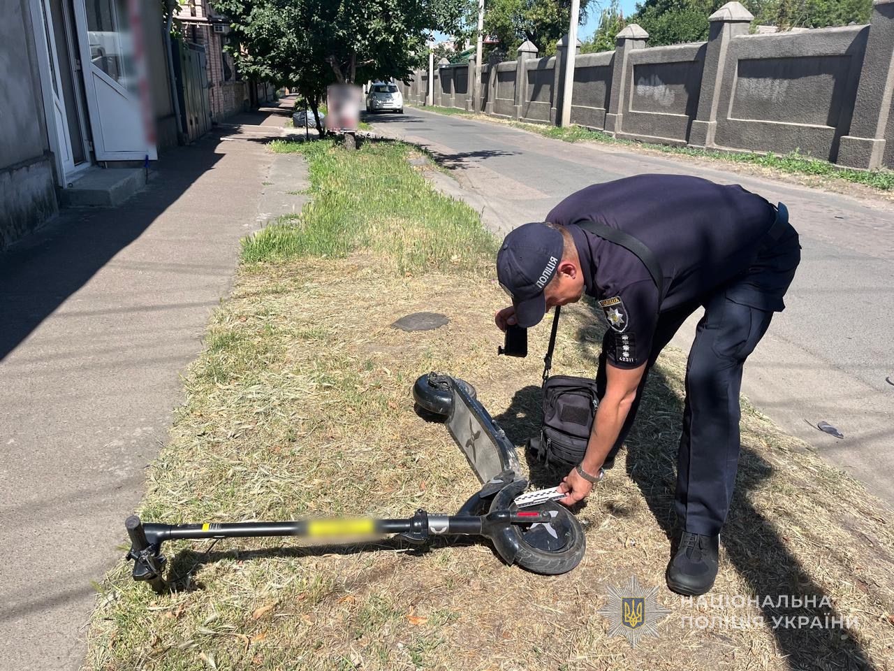 Друга подія за участю дівчини мала місце на перехресті вулиць Героїв Українського фронту та Бендерська. Поліцейські встановили, що юна керманичка електросамоката, їдучи другорядною дорогою і пересікаючи головну, не пропустила легковий автомобіль, що мав перевагу в русі, та допустила з ним зіткнення. Дівчина отримала забої тіла.