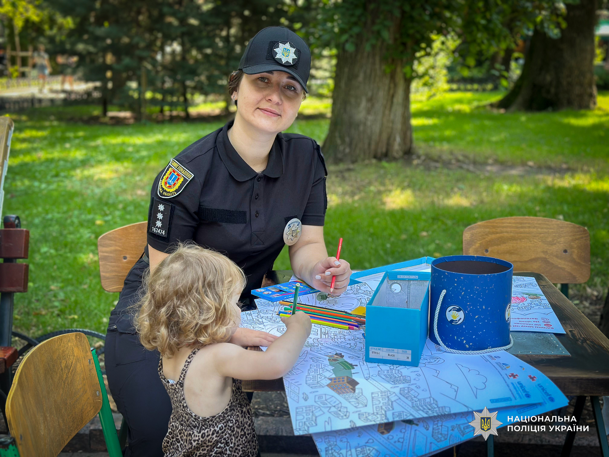 Від правоохоронців малеча дізнавалася, як діяти під час тривоги, уникати небезпек в інтернеті, поводитися на воді та розпізнавати підозрілі предмети. Корисну інформацію дітям передавали не лише усно, а й у тематичних листівках із порадами.