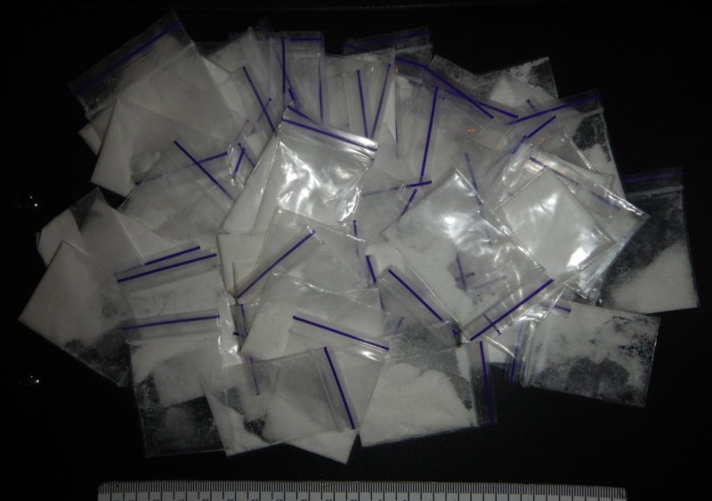Поліцейські вилучили у зловмисника 100 зіп-пакетиків зі порошкоподібною речовиною білого кольору, схожою на психотропну речовину Alfa-PVP. Вміст упаковок перевірили експрес-тестом на наявність наркотиків і результат показав, що всередині – психотропна речовина.