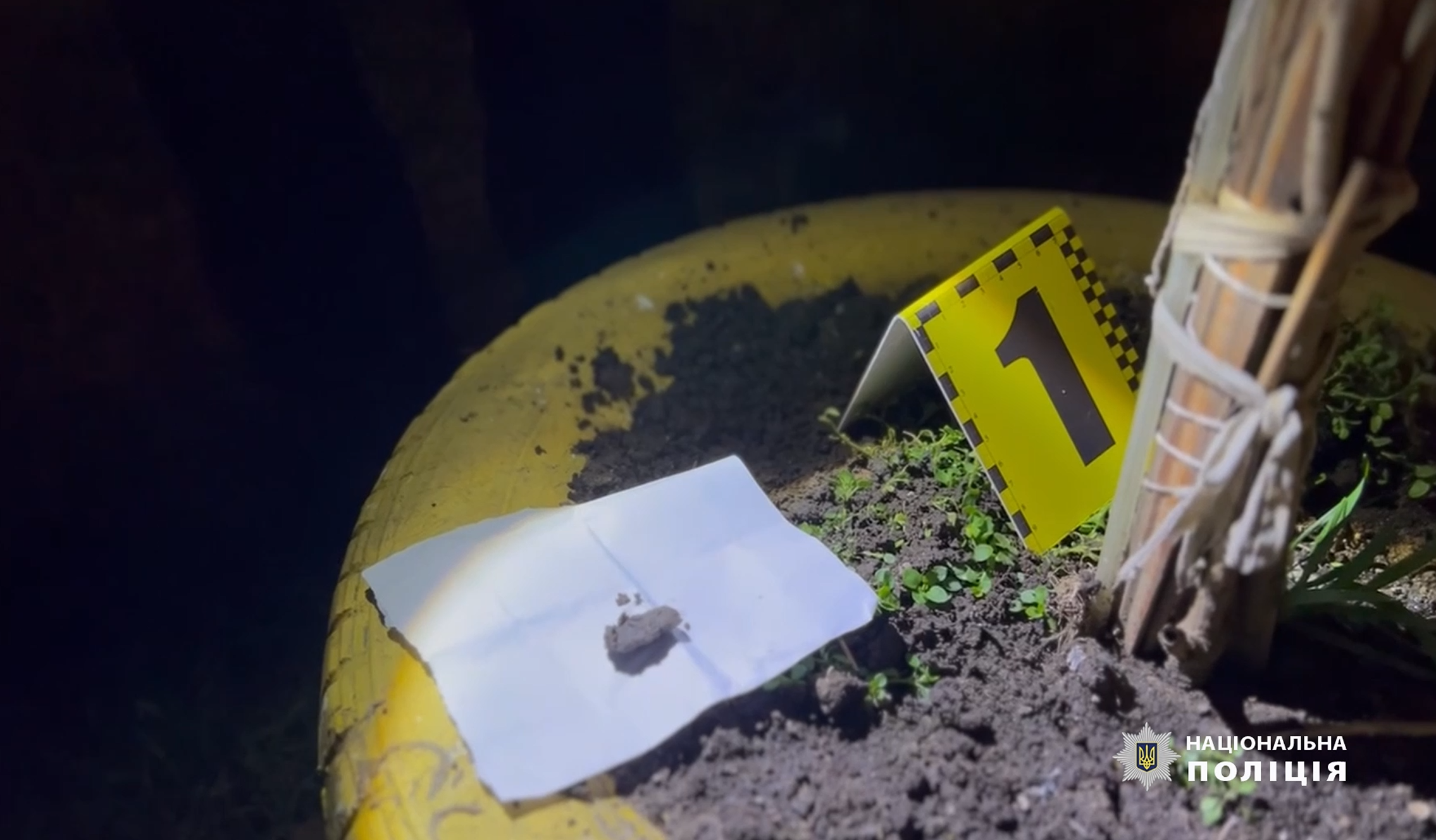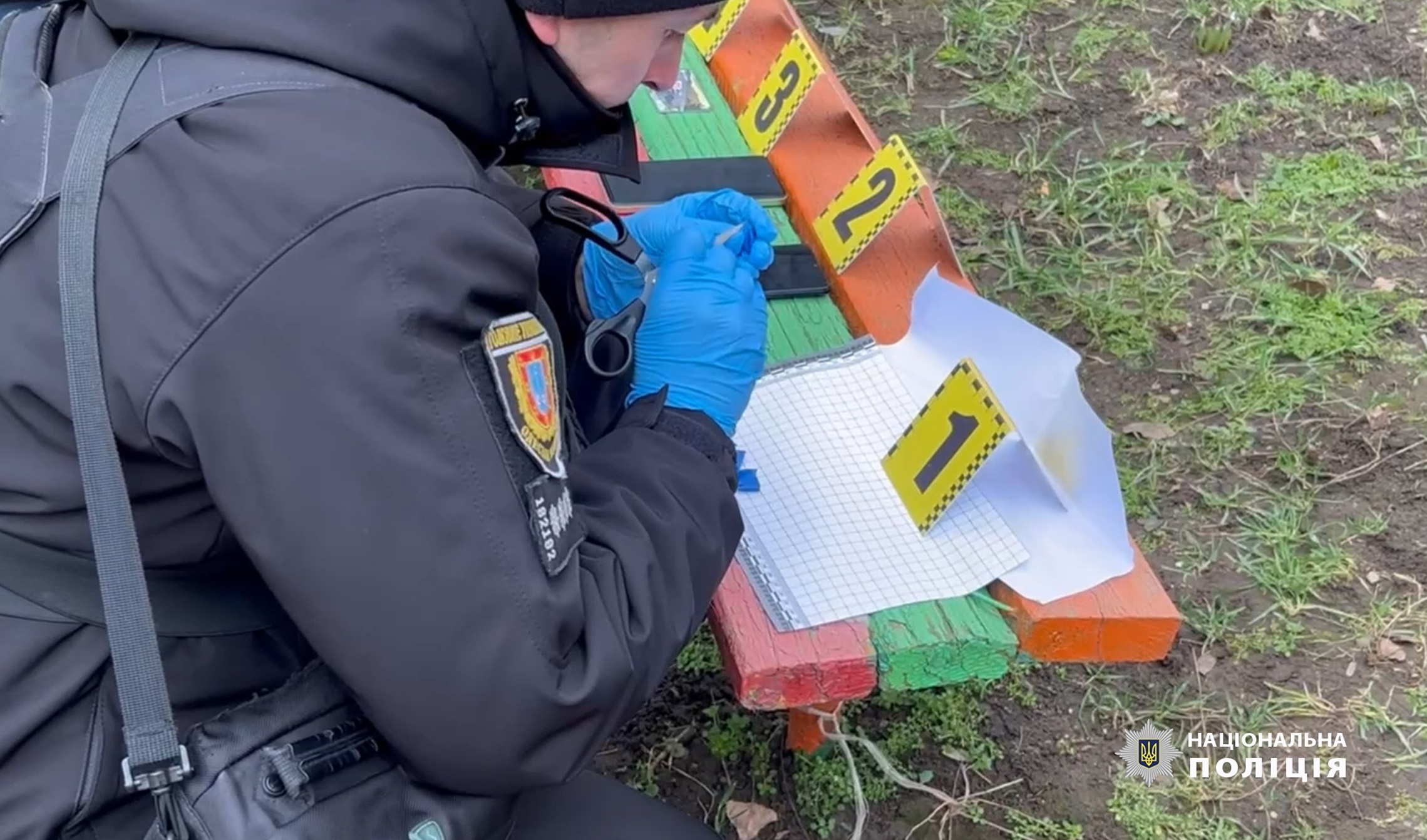 Кілька днів тому в одному із дворів багатоповерхового житлового будинку на вулиці Академіка Заболотного оперативники територіального підрозділу поліції виявили цивільну подружню пару, що робила і фотографувала «закладки» з «товаром». На місце було викликано слідчо-оперативну групу, яка задокументувала злочинні дії чоловіка та жінки.