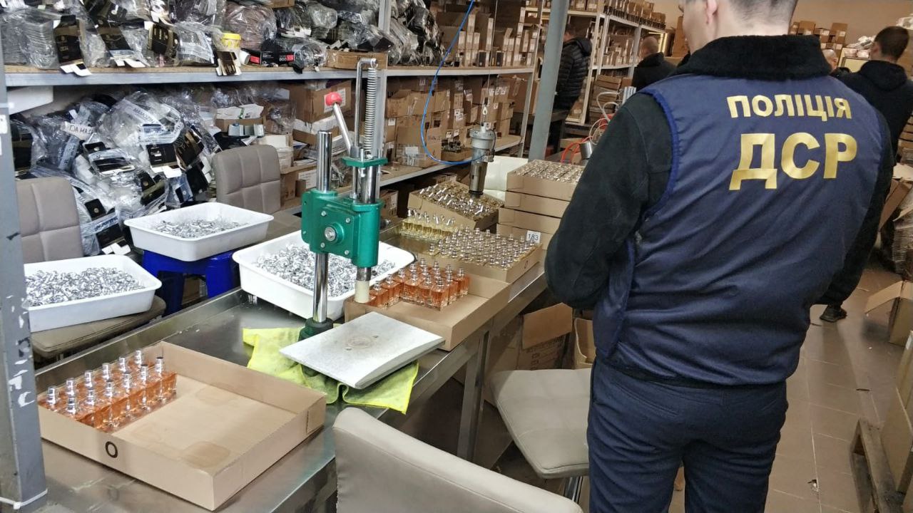 Парфуми під виглядом відомих брендів реалізовували через оптову та роздрібну мережі. За результатами заходів поліцейські вилучили 40 тисяч флаконів «духів», обладнання, сировину, тютюнову продукцію загальною сумою понад 100 млн грн.