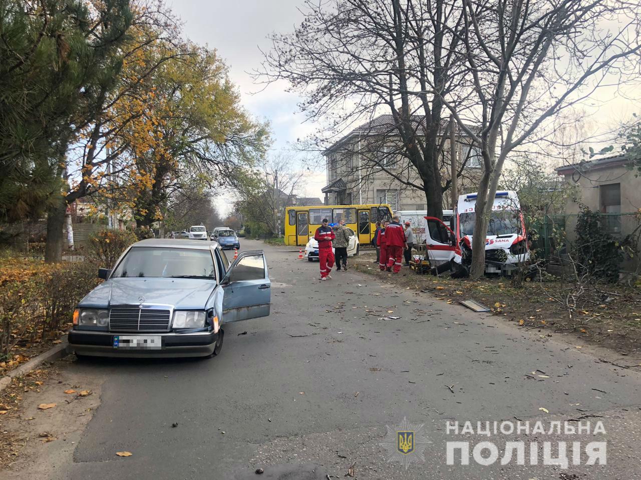Попередньо встановлено, що 29-річний водій а/м «Mercedes» під час повороту ліворуч не надав перевагу в русі автомобілю швидкої допомоги, який зі слів очевидців, з проблисковими маячками та звуковою сиреною здійснював обгін колони автотранспорту по зустрічній смузі руху. Внаслідок зіткнення швидка виїхала за межі проїзної частини ліворуч з подальшим наїздом на дерево.