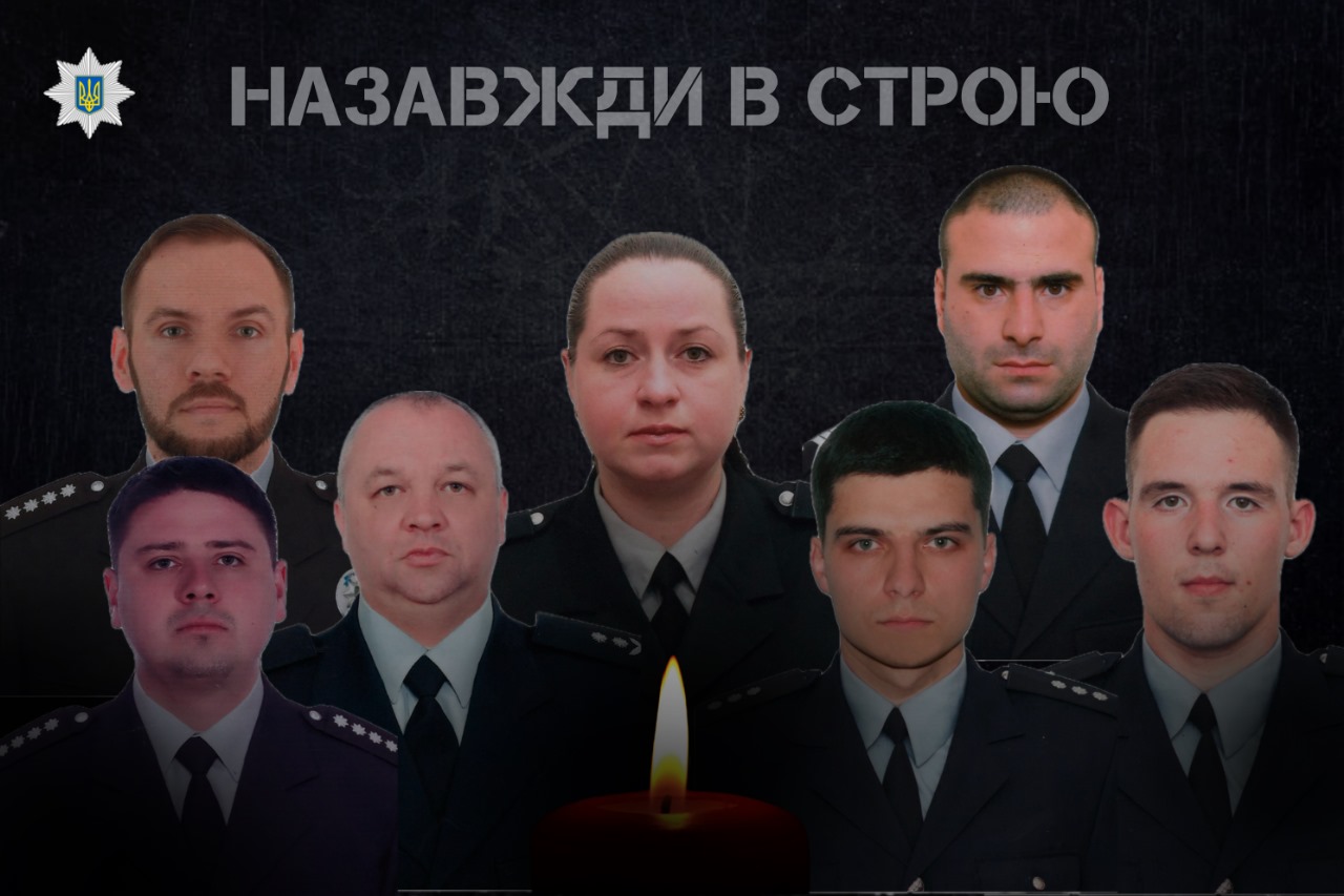 Семеро поліцейських загинули 18 листопада під час ракетної атаки ворога по середмістю Одеси. Вадим Ковальський, Вадим Джміль, Микола Лимар, Станіслав Пащенко, Ігор Целий, Вікторія Мещерякова, Михайло Потьомкін. На жаль, сьогодні у лікарні після важких поранень загинув ще один поліцейський Вадим Зезюлін. Назавжди в нашій пам’яті. Назавжди в строю.