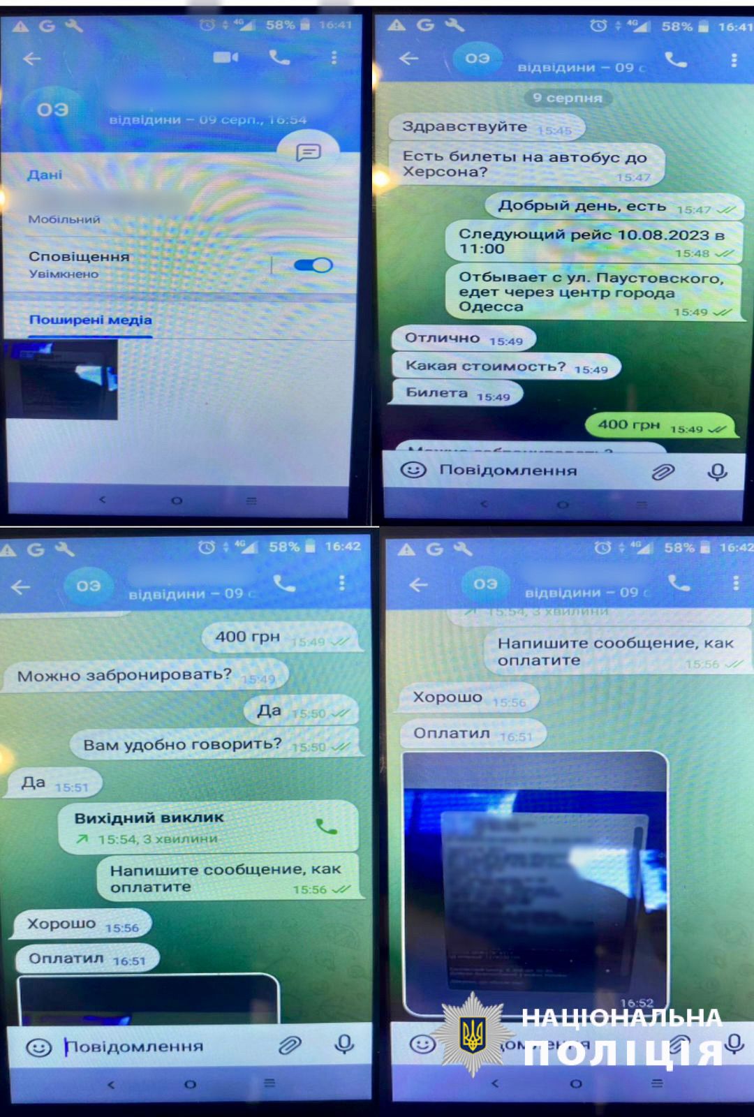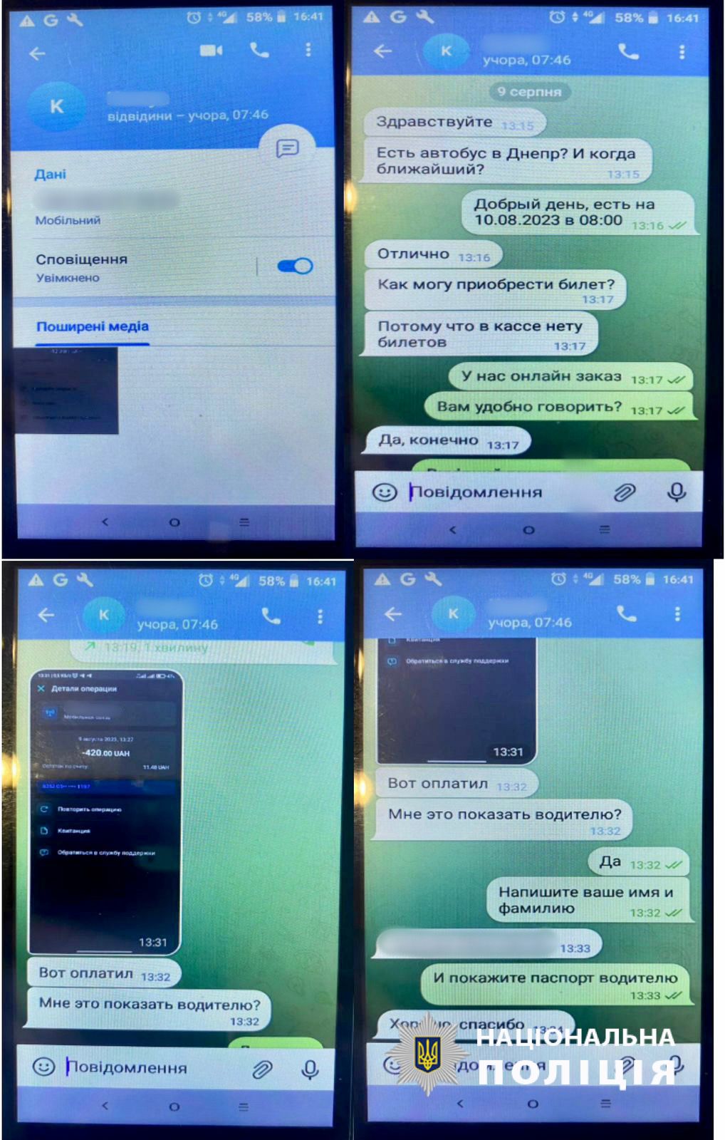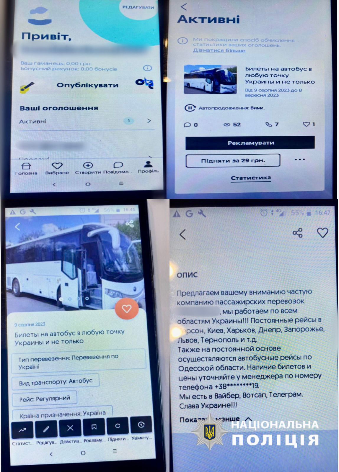 Правоохоронці встановили, що правопорушник під вигаданими анкетними даними розмістив в інтернет-мережі оголошення щодо надання послуг з міжміських пасажирських перевезень та спонукав громадян, які з ним зв’язувалися, до їх повної передоплати.