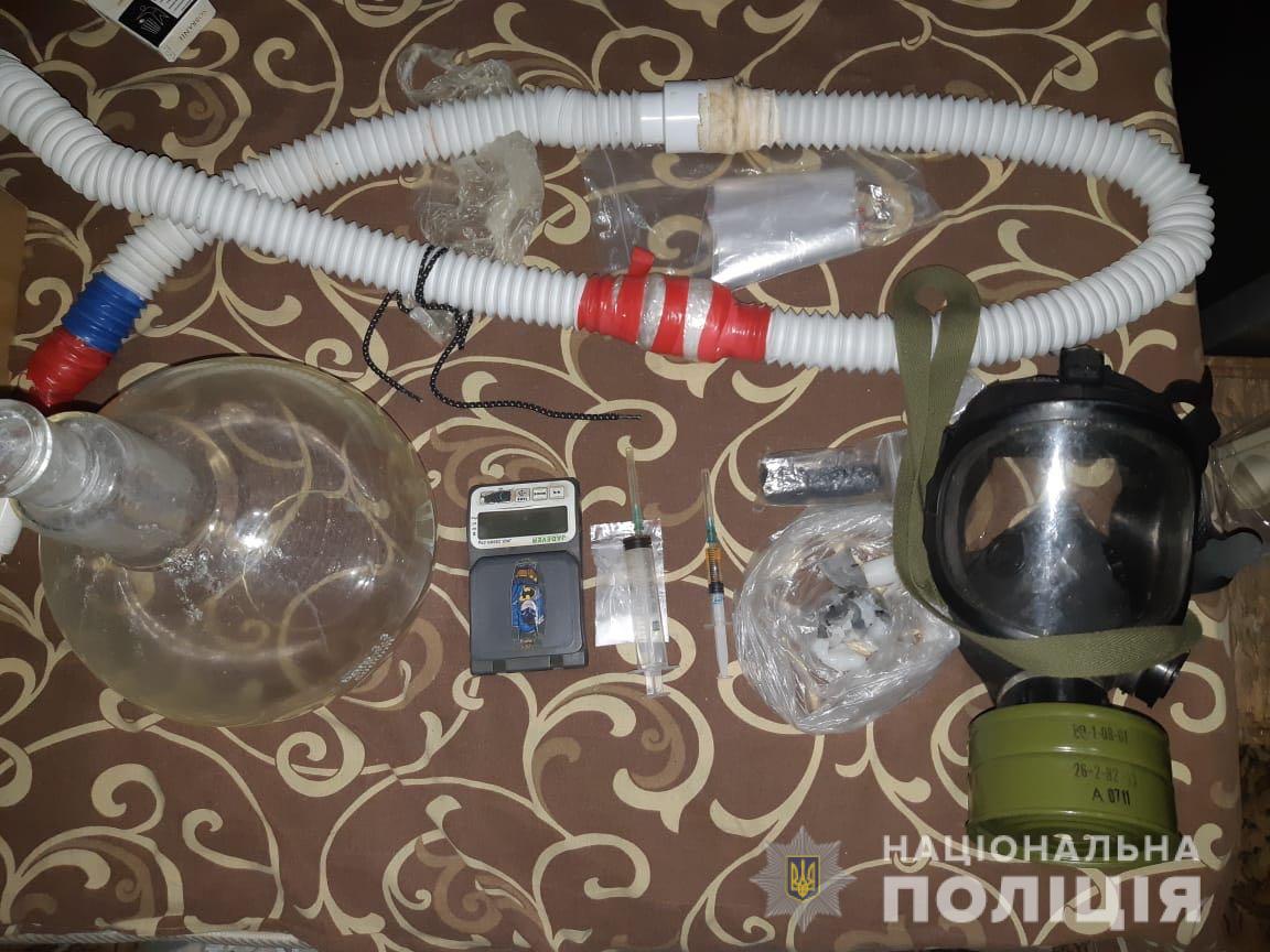 В ході санкціонованого обшуку за місцем мешкання зловмисника було виявлено 2 пакунки з амфетаміном, загальною вагою 100 гр., 5 згортків амфетаміну, вагою 5 гр., пакунок з марихуаною вагою 10 гр., приладдя та прекурсори для виготовлення наркотиків.