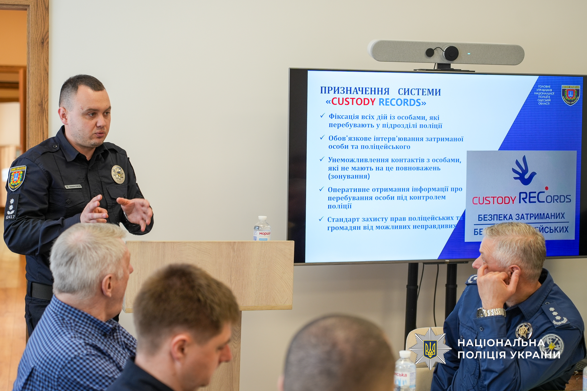 «Ми обговорили різні проблемні питання, що виникають під час роботи з громадянами та захисту їхніх прав, і шляхи їх вирішення. Зокрема йшлося про ефективне забезпечення дотримання прав людини в поліцейській діяльності шляхом впровадження сучасних механізмів контролю за діями поліцейських – роботу Custody Records у підрозділах поліції», - зазначив начальник відділу організації діяльності ізоляторів тимчасового тримання та моніторингу дій із затриманими ГУНП в Одеській області підполковник поліції Олексій Усатий.