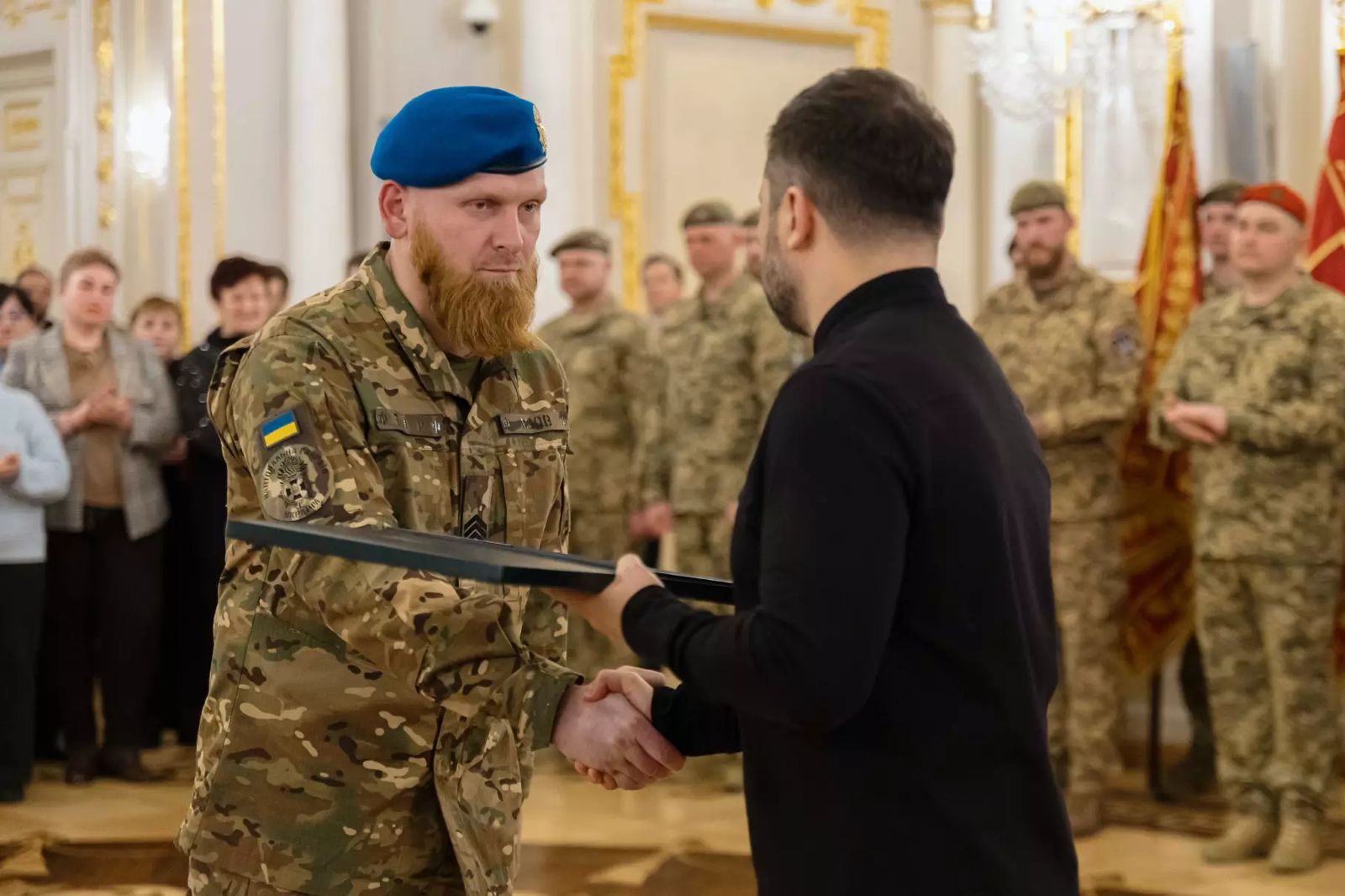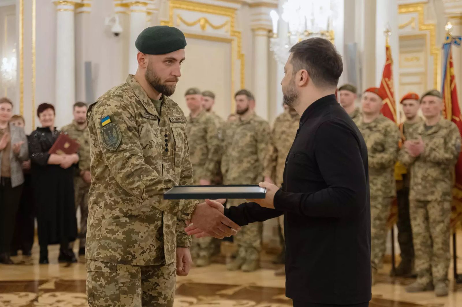 Президент України Володимир Зеленський відзначив орденами «Золота Зірка» Героїв України та передав нагороди рідним загиблих Героїв, вручив українським воїнам відзнаки «Хрест бойових заслуг» та інші високі державні нагороди, а також підрозділам Сил оборони – бойові прапори, стрічки відзнаки «За мужність та відвагу» та стрічки почесних найменувань.