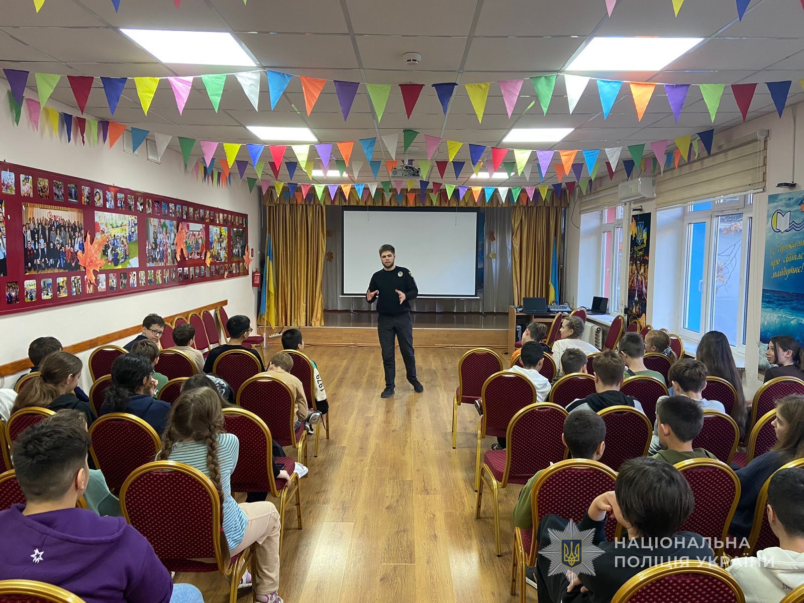 Співробітники ювенальної превенції Одеського районного управління поліції № 1 проводять у закладах освіти заходи щодо профілактики правопорушень серед дітей. Нещодавно такі уроки відбулися у загальноосвітніх школах Київського району. Долучилися до них і працівники Державної служби України з надзвичайних ситуацій.
