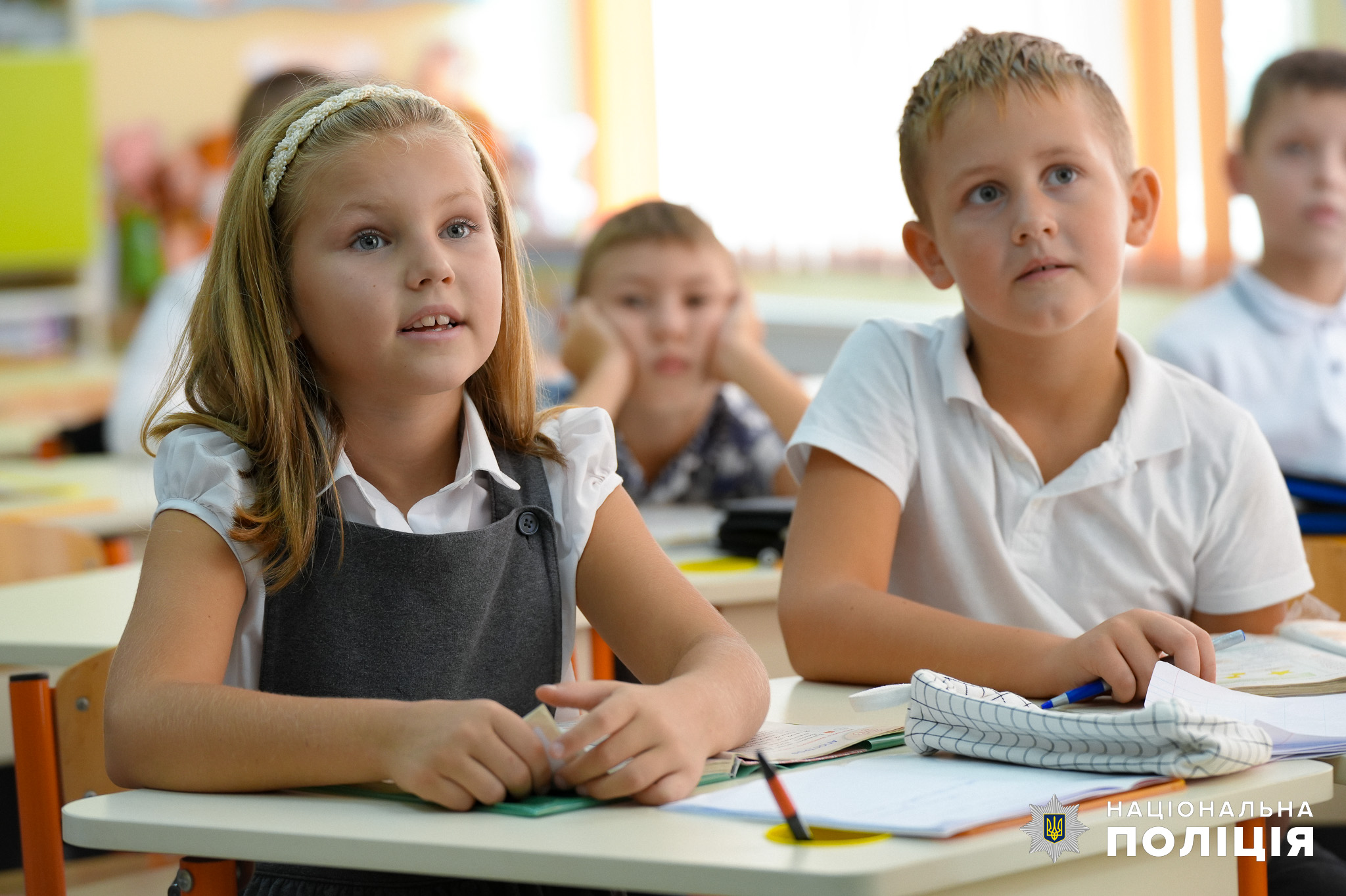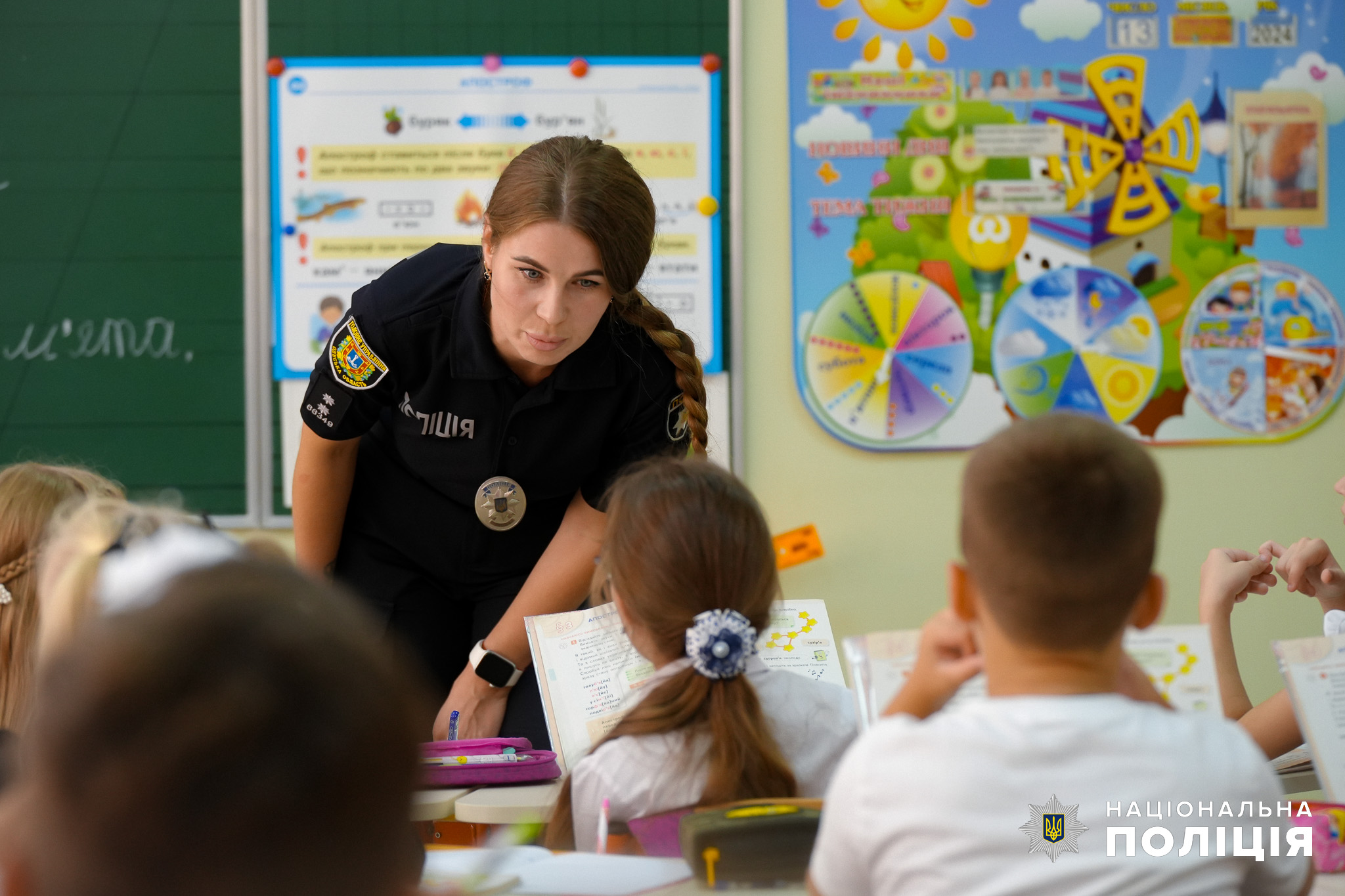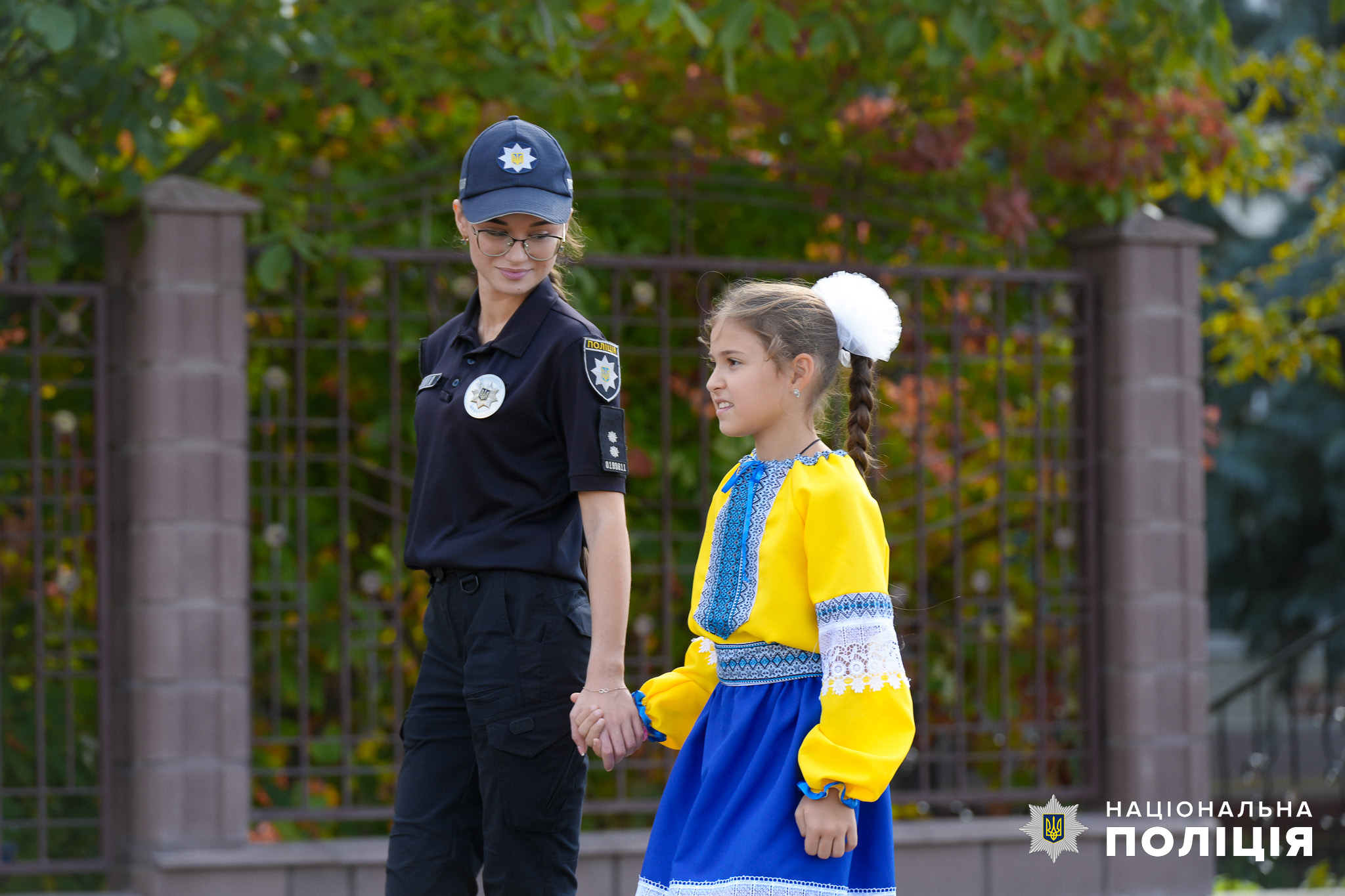 А тепер йдемо у навчальні заклади дивитися, як усе відбувається на практиці. У першому ж ліцеї бачимо, які інспекторка служби освітньої безпеки Єлизавета Касіяник здійснює огляд будівлі та прилеглої території щодо наявності небезпечних предметів, які можуть нести загрозу життю і здоров’ю учасників навчального процесу. Після цього поліцейська зустрічає дітей, які сходяться на уроки. Учні вже звикли, що їх супроводжує представник поліції, сприймають його як захисника та наставника, охоче спілкуються з ним на теми, які їх турбують.