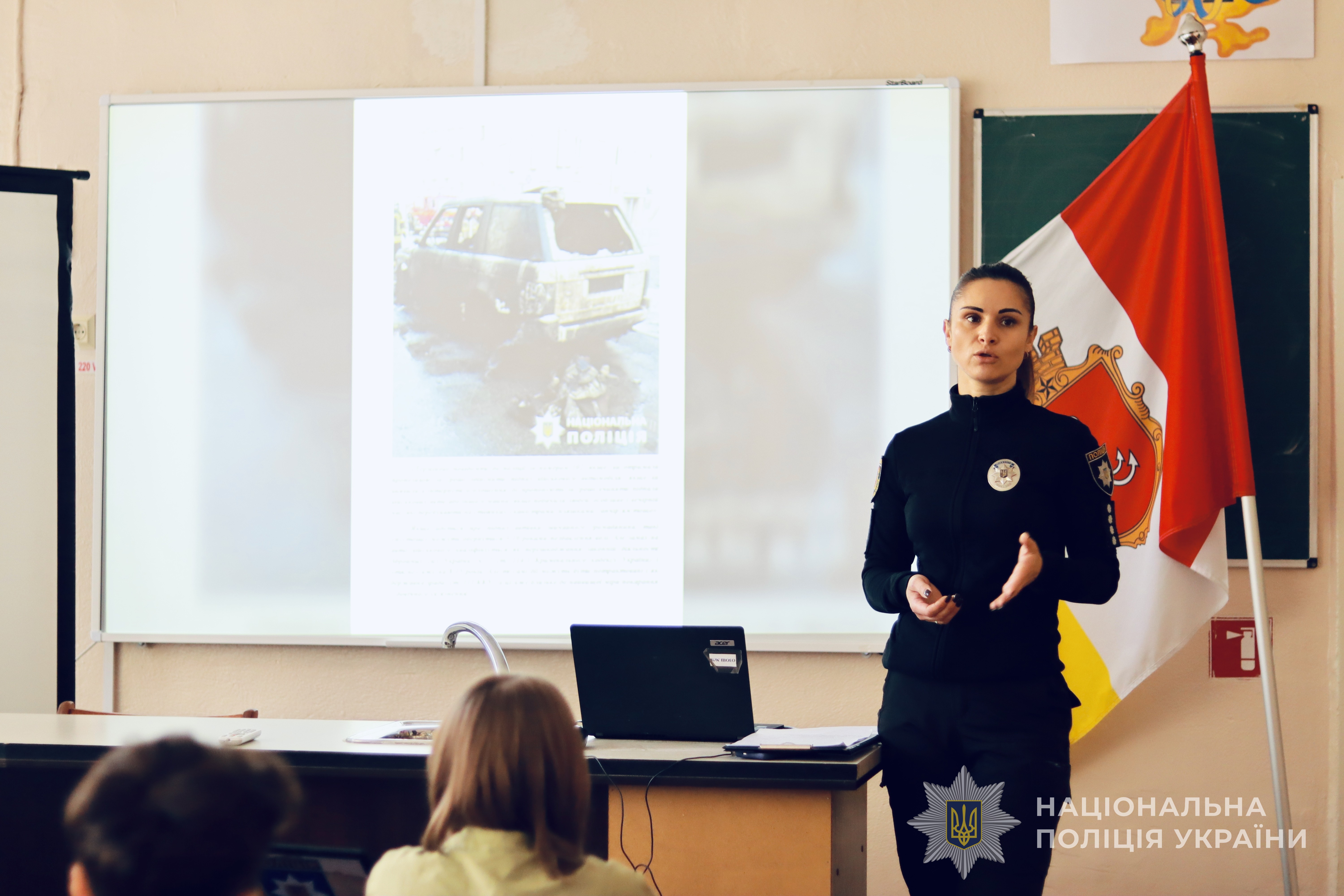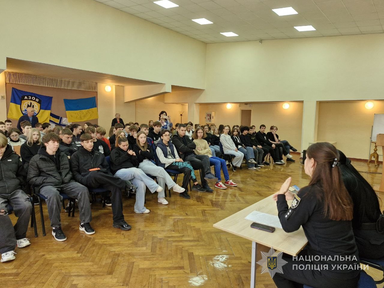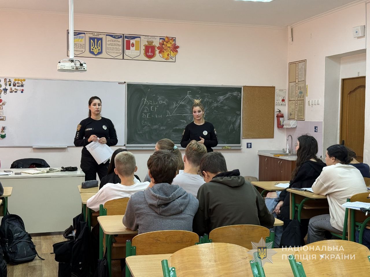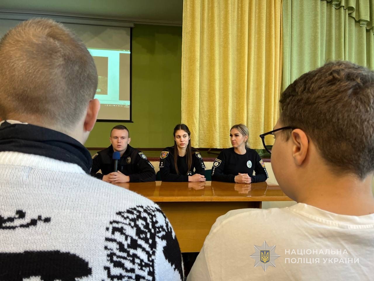 Правоохоронці говорять зі школярами про правопорушення, до яких можуть вдаватися діти їхнього віку – булінг, крадіжки, пограбування, наркозлочини, пошкодження чужого майна. Звертають увагу на те, що в інтернеті нині дуже багато оманливих пропозицій за грошову винагороду скоїти той чи інший злочин, приміром підпалити чужу автівку, квартиру чи будь-який інший об’єкт. Ті, хто за цим стоїть, маніпулюють свідомістю людей, обіцяючи великі гроші, втягують у протиправну діяльність, а потім платять мізерні кошти або взагалі нічого, натомість починають шантажувати, залякувати, що повідомлять про виконавця злочину в поліцію, якщо він не виконає наступне замовлення. І чимало громадян, у тому числі підлітків, погоджується, не усвідомлюючи до кінця, чим це закінчиться.