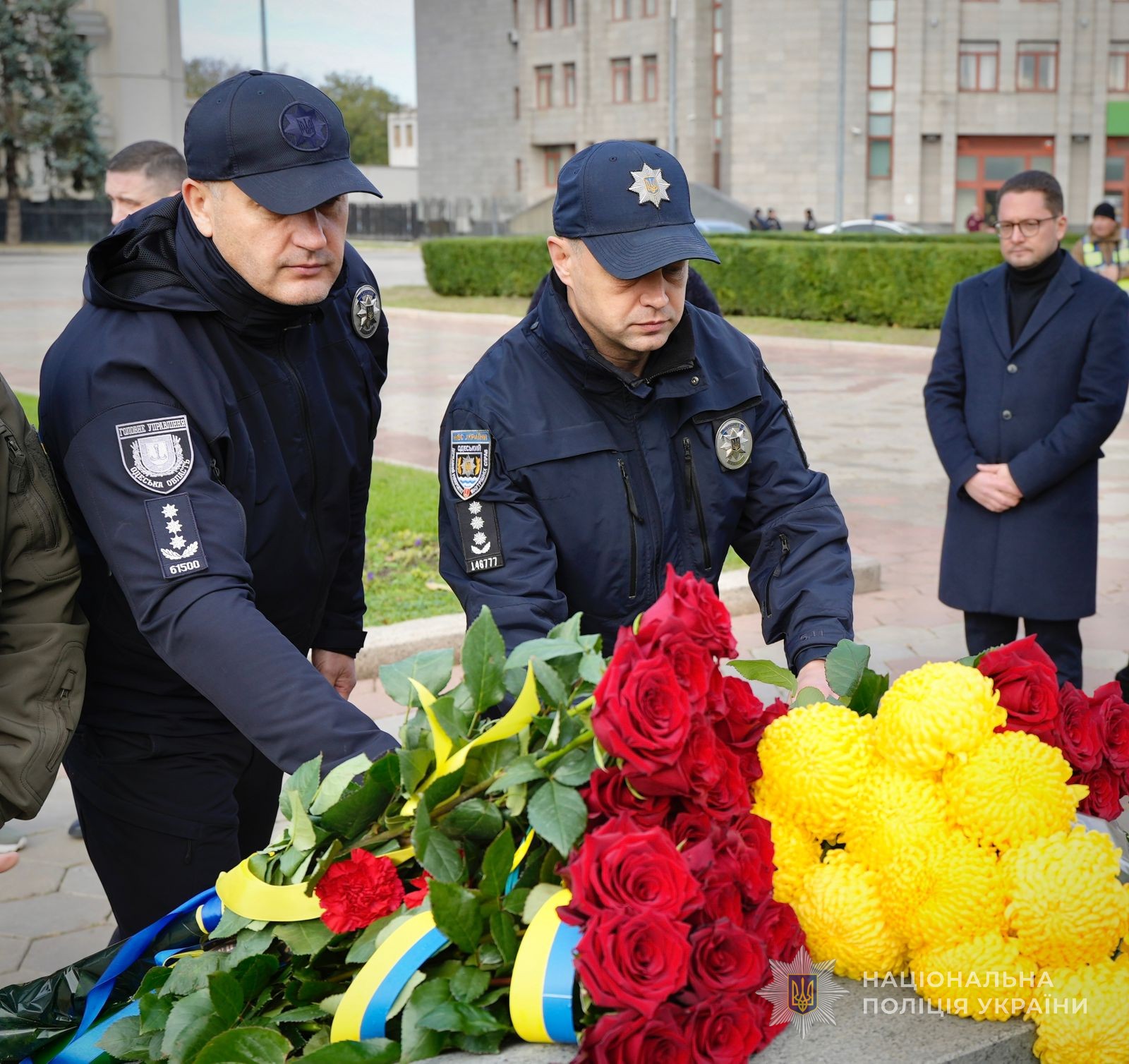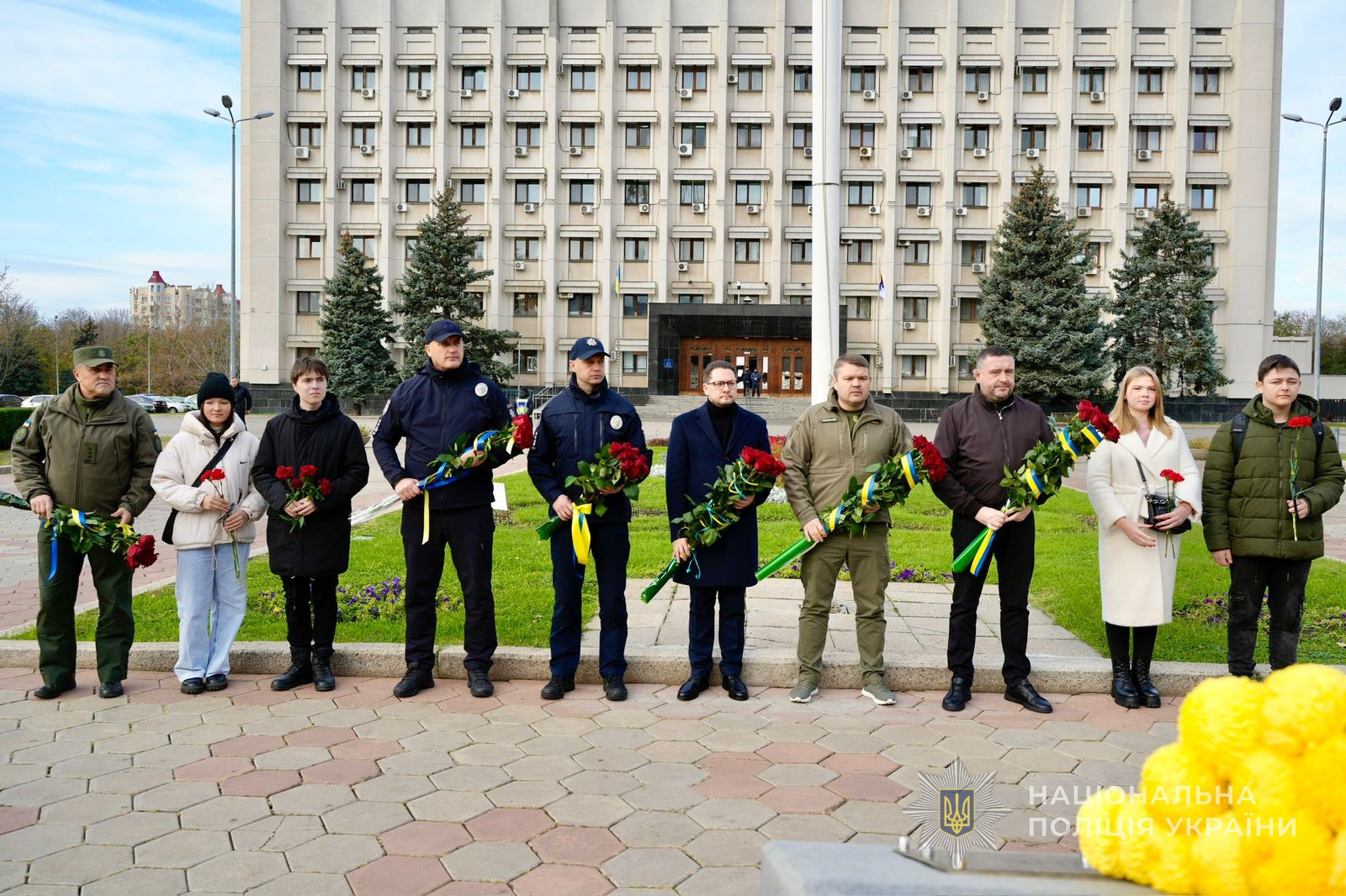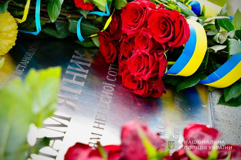 В Одесі пройшло покладання квітів до пам’ятного знаку Героям Небесної Сотні. Заступник начальника ГУНП в Одеській області Денис Захарченко разом з представниками місцевої влади, військовими, громадськими діячами та містянами віддали шану всім, хто поліг у боротьбі за вільну і квітучу Україну.