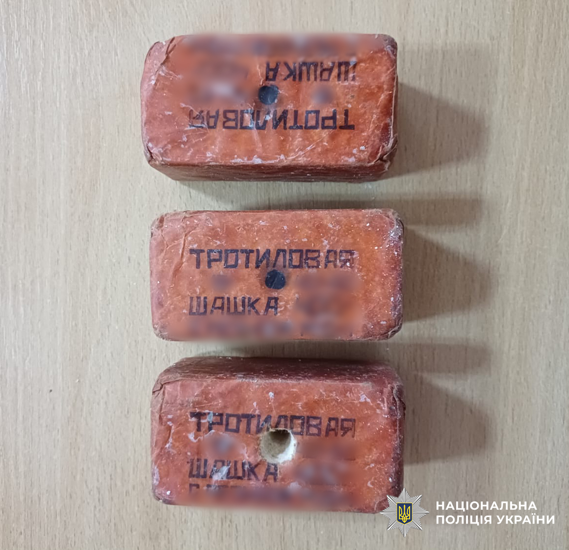 Чоловік знайшов три тротилові шашки загальною вагою 1200 грамів і зберігав, щоб продати. Поліцейські задокументували факт збуту «товару» за 5 000 грн, вилучили речові докази, після чого затримали ділка у процесуальному порядку. Надалі суд обрав йому запобіжний захід у вигляді тримання під вартою з правом внесення застави у розмірі 242 тис. 240 грн, яким він не скористався.