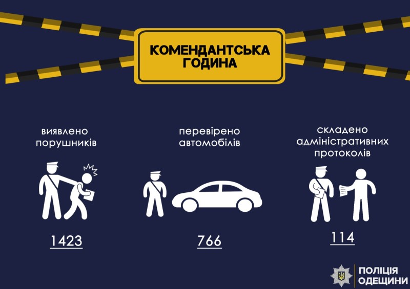 Шановні громадяни! Нагадуємо, що з 24 до 5 години на території Одеської області запроваджено комендантську годину. В цей час на вулицю можна виходити тільки по спеціальних перепустках або для того, щоб пройти в найближче укриття під час повітряної небезпеки. Це не примха влади, а необхідний захід, який сприяє охороні правопорядку в регіоні та спрощує контрдиверсійну діяльність Сил безпеки й оборони України. Тож громадяни, які нехтують встановленими обмеженнями, не тільки ускладнюють правоохоронцям виконання завдань, визначених керівництвом МВС України, а й наражають себе на небезпеку.
