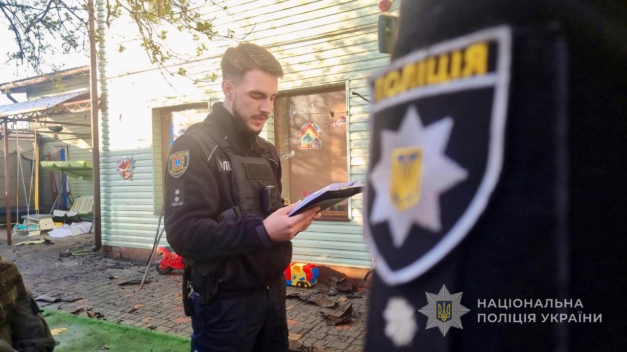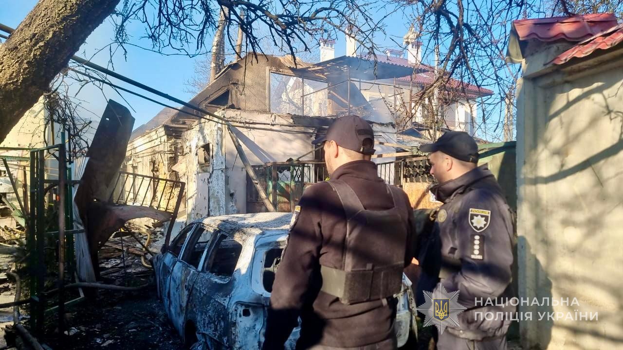 Поліцейські фіксують наслідки нічної атаки, збирають докази, опитують людей, надають психологічну допомогу та забезпечують правопорядок.