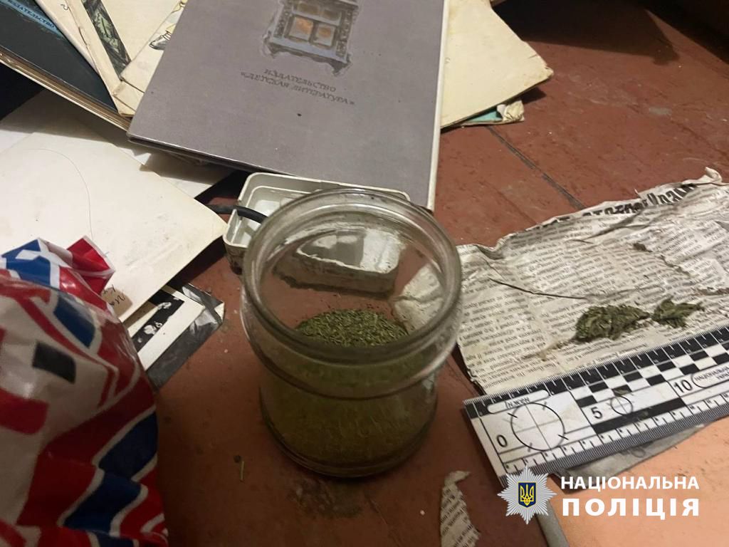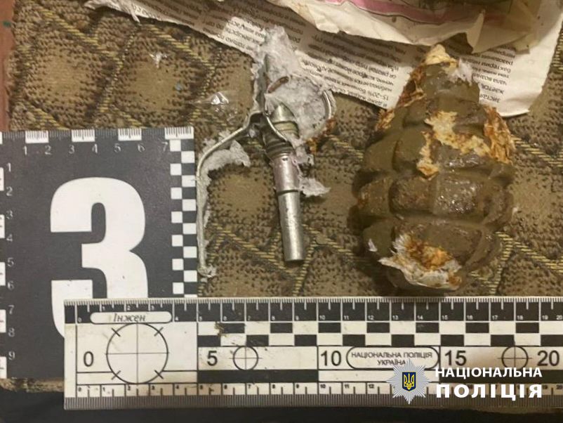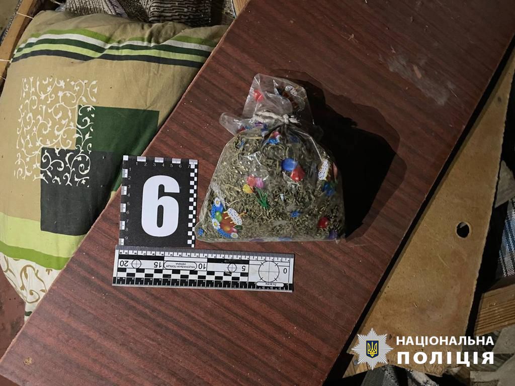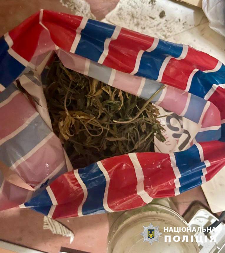 Розуміючи, що в квартирі також можуть знаходитися небезпечні предмети, правоохоронці провели в ній невідкладний обшук, під час якого виявили та вилучили ще два корпуси, попередньо, гранати Ф-1 та запали до них, а також паперовий згорток і банку із рослинною речовиною зеленого кольору у висушеному та подрібненому стані, схожою на канабіс, та зіп-пакет із порошкоподібною речовиною білого кольору.