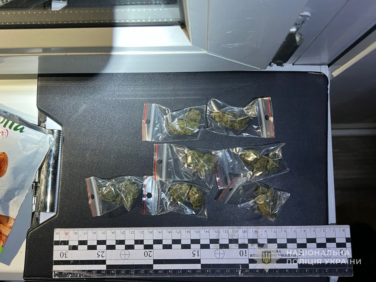 Поліцейські задокументували, як чоловік двічі збув одному й тому ж «клієнту» загалом три полімерні пакетики із канабісом вагою 12,6 грамів, за що отримав від покупця 4 000 гривень. Обмежений в обігу наркотик фігурант продавав у тамбурі підʼїзду багатоповерхівки, в якій сам мешкав.
