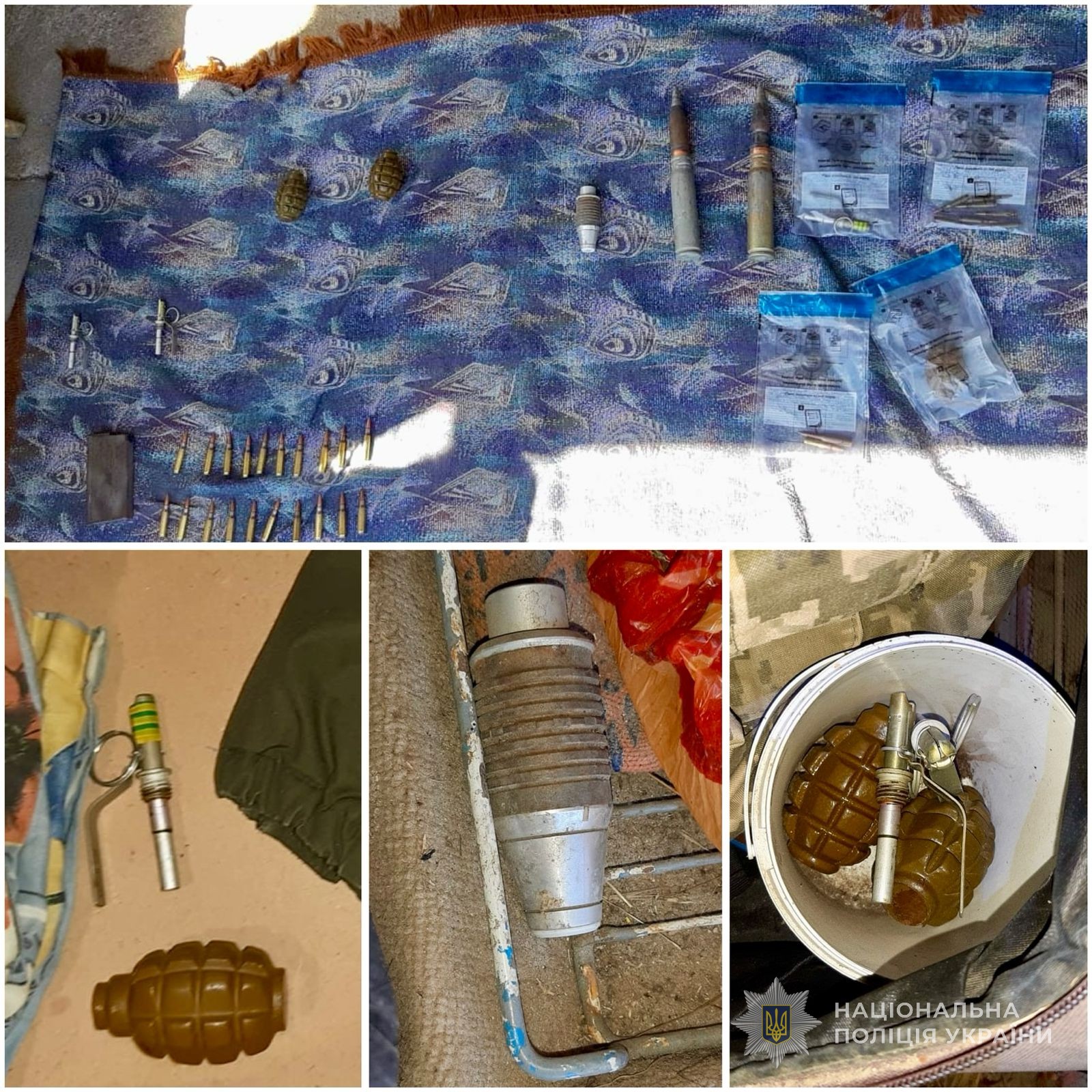 Провівши в оселі чоловіка санкціонований обшук, поліцейські виявили декілька схованок у спальній кімнаті, на горищі будинку та під дахом господарського приміщення трьох корпусів ручних осколкових гранат із запалами, пострілу осколочної гранати, двох снарядів та майже тридцяти набоїв, які, за попереднім висновком фахівців, відносяться до категорії вибухових пристроїв та бойових припасів.