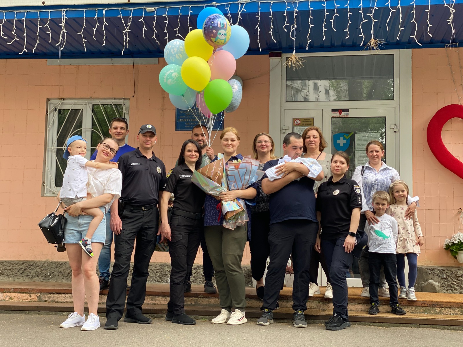 Поліцейська Марія та нацгвардієць Юрій поєднали свої долі перед Богом у червні минулого року, а сьогодні колеги вітали молоду сім’ю із народженням синочка Ростислава.