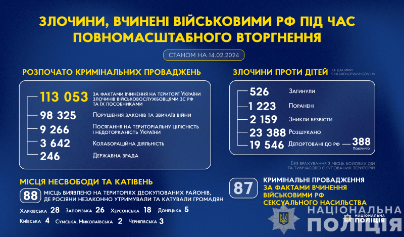 Злочини, вчинені військовими рф під час повномасштабного вторгнення в Україну (станом на 14.02.2024)