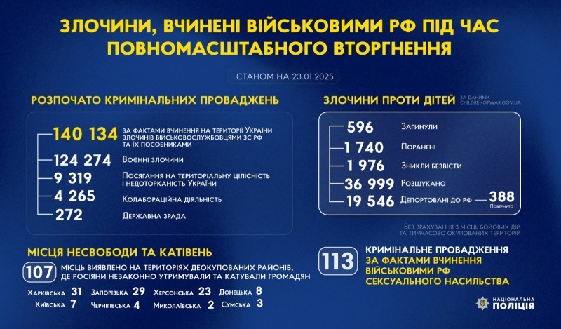 Злочини, вчинені військовими рф під час повномасштабного вторгнення в Україну (станом на 23.01.2025)